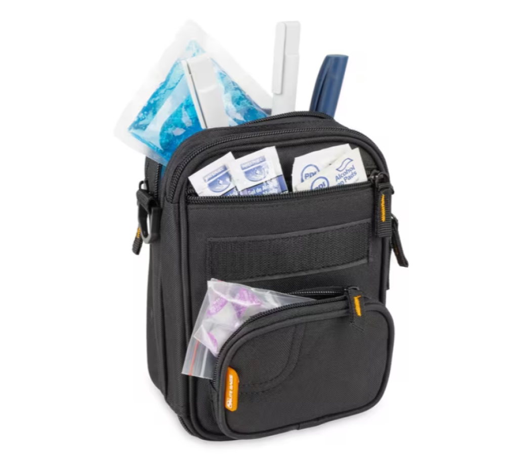 تعد حقيبة Elite FIT'S واحدة من أكثر حقائب اليوم شمولاً لمرضى السكر في السوق، فهي لا توفر فقط جميع الميزات والحجرات التي يحتاجها أي مريض سكر من النوع الأول، بل إنها أنيقة وعملية أيضًا، مع حزام كتف طويل قابل للتعديل يسمح بارتدائها براحة. توفر العديد من الحجرات والجيوب المزودة بسحّاب مساحة تخزين واسعة لجميع المواد والمعدات اللازمة للعلاج اليومي لمرض السكر، بما في ذلك جيب داخلي مخصص لوضع عبوة تبريد هلامية وقوارير الأنسولين. تحتوي الحجرات الأمامية الإضافية على جيوب أمامية شبكية للإبر وشرائط الاختبار وما شابه ذلك، بينما تتميز الجيوب الأمامية الشفافة الأخرى بالأبعاد المثالية لأجهزة قياس نسبة السكر في الدم والبطاقات الطبية وغيرها من الملحقات. تشكل حقيبة السفر الأنيقة هذه رفيقًا مثاليًا لأي مريض سكر أثناء التنقل.