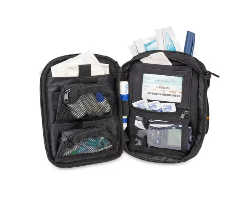 • حجرات أمامية تحتوي على جيوب متعددة لتنظيم وتخزين المواد اللازمة لعلاج مرض السكري والتأثيرات الشخصية.